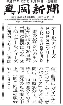 演奏当日教えて頂いたのですが、真岡新聞さん(2015/8/28号)がジェイミーズの演奏告知を載せてくれていたのですね!ありがとうございました!
