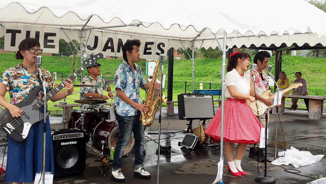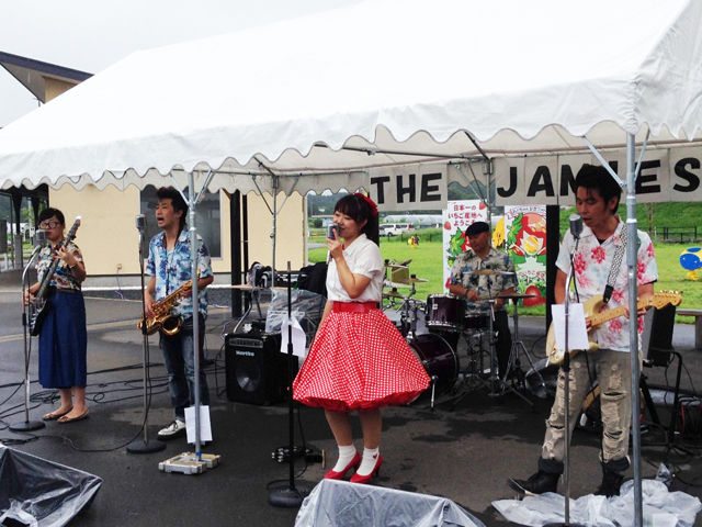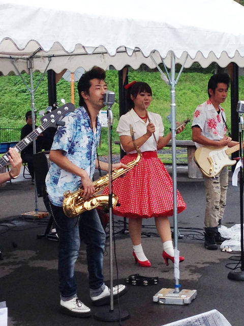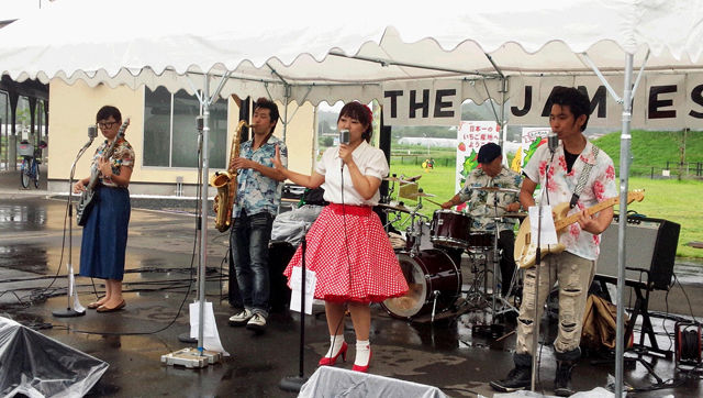 雨の中、3ステージ目までお客様に待っていて頂くのも大変だと判断し、急遽曲数を変更し長めの2ステージへと変更させて頂きました。
