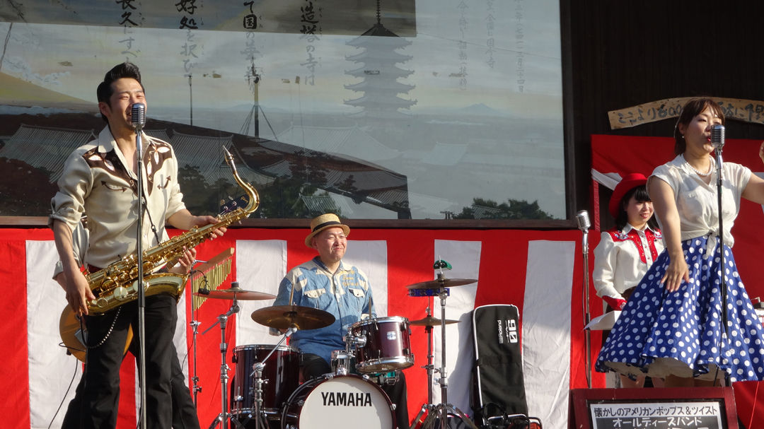 毎年ここで演奏させて頂くと、皆さんお花見&ピクニックのような感じで陽気に踊って頂けてうれしいですね。