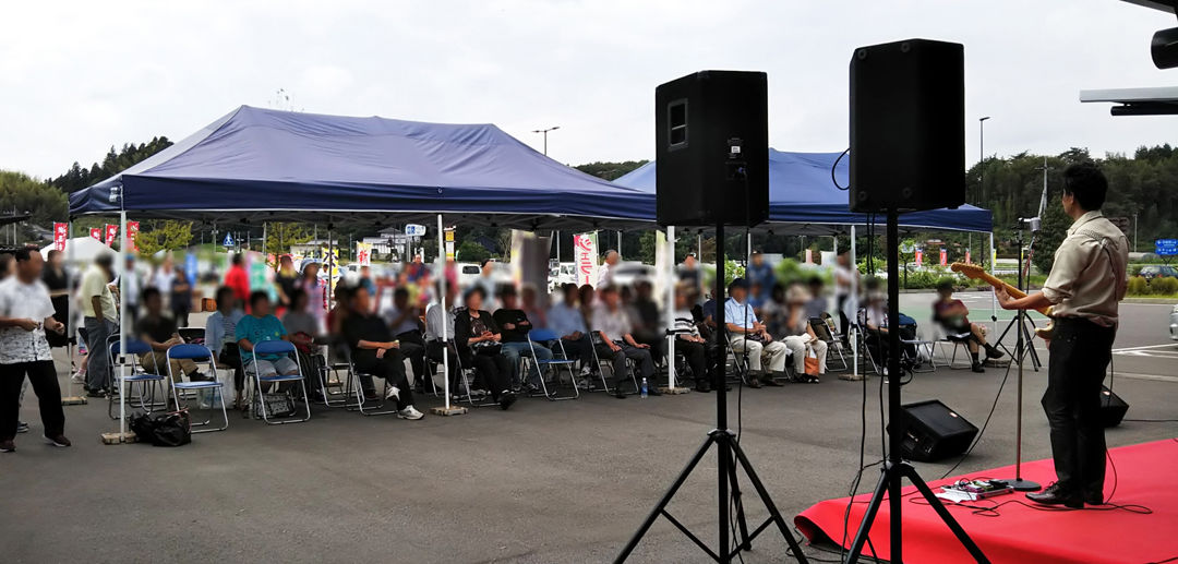 電源(コンセント)だけお借りできればそれ以外の音響機材一式持参で出張演奏いたします!