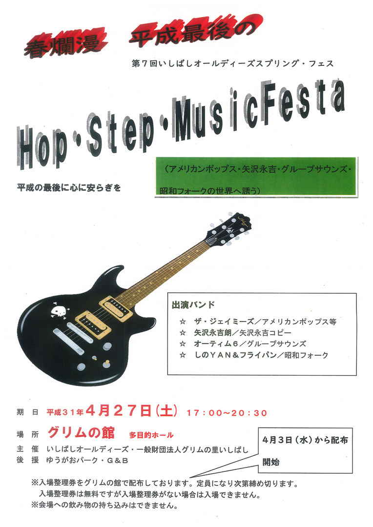 ▼4/27(土)下野市 石橋グリムの森(OP17時/4バンド/ジェイミーズはトリ19:45)無料/※要整理券