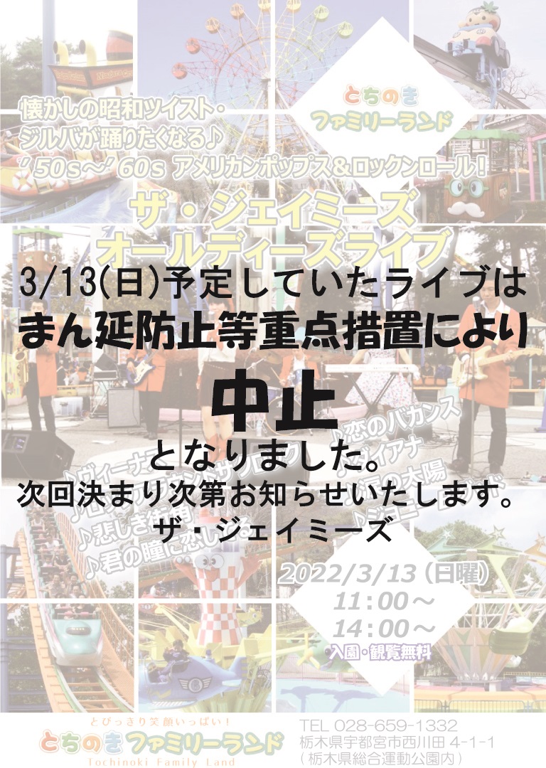 3/13日曜に予定していた とちのきファミリーランドでのライブは