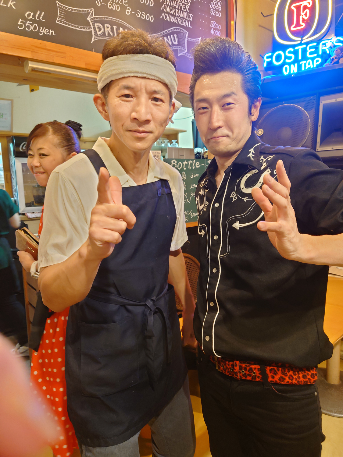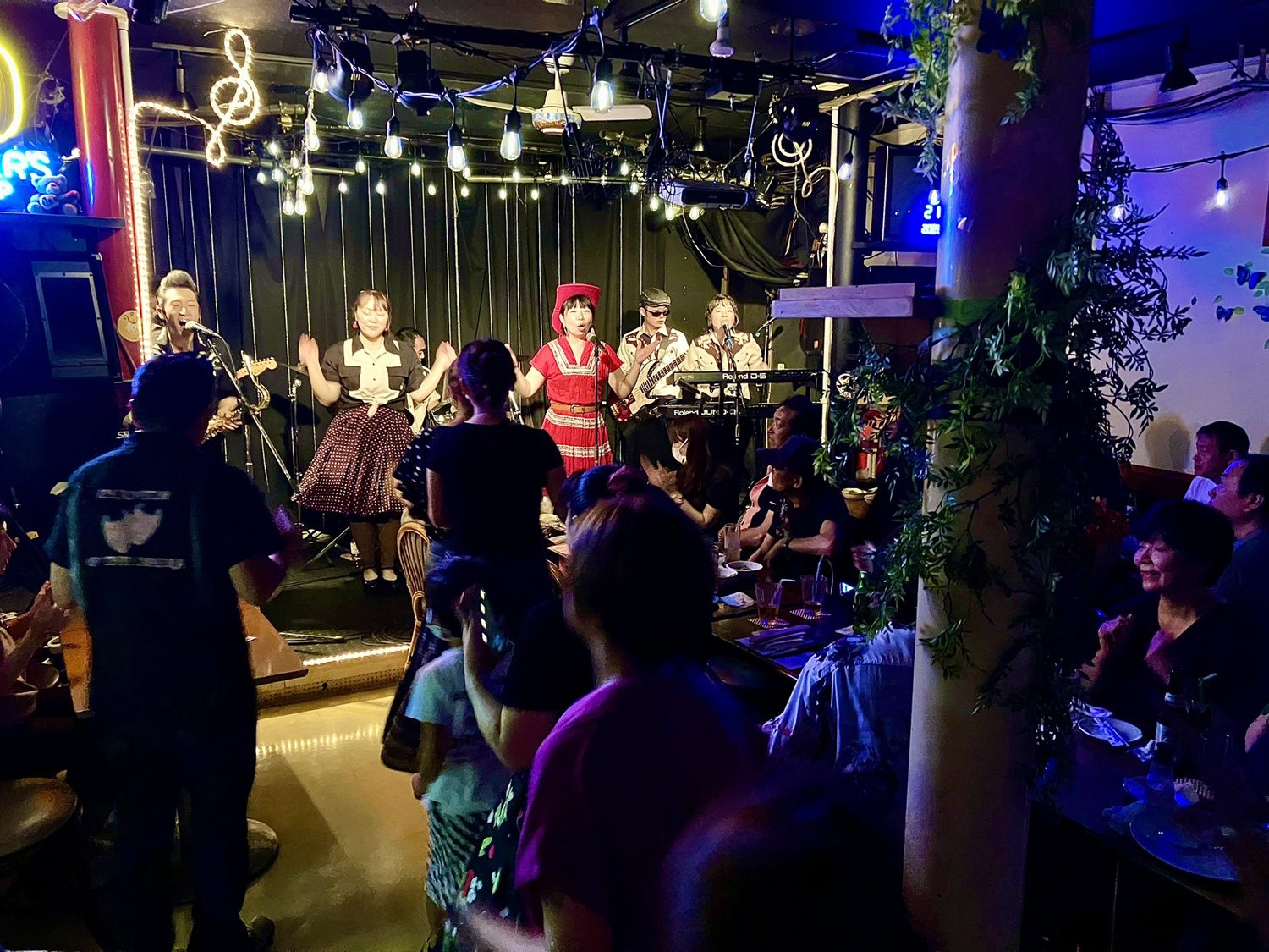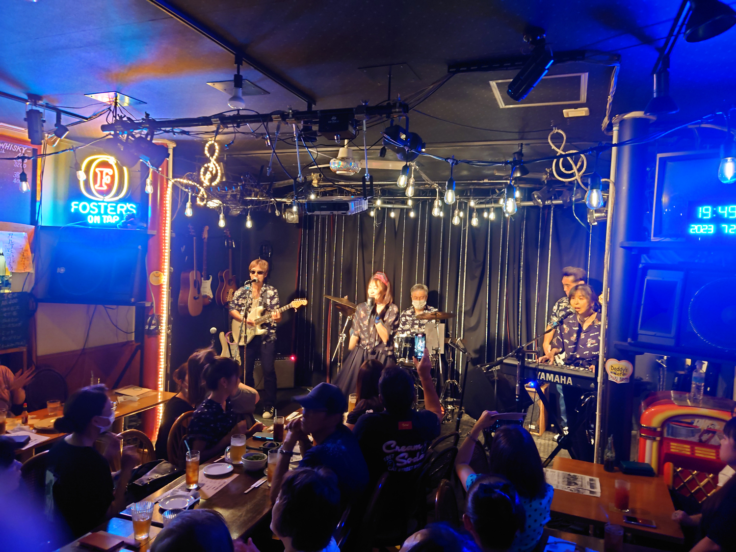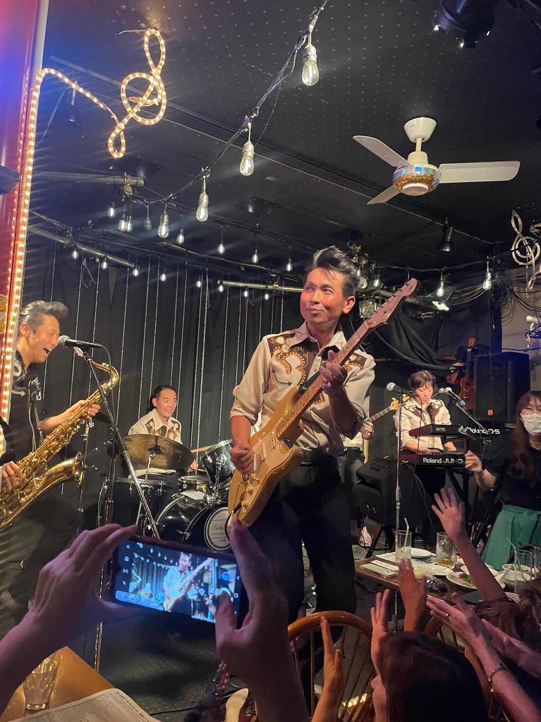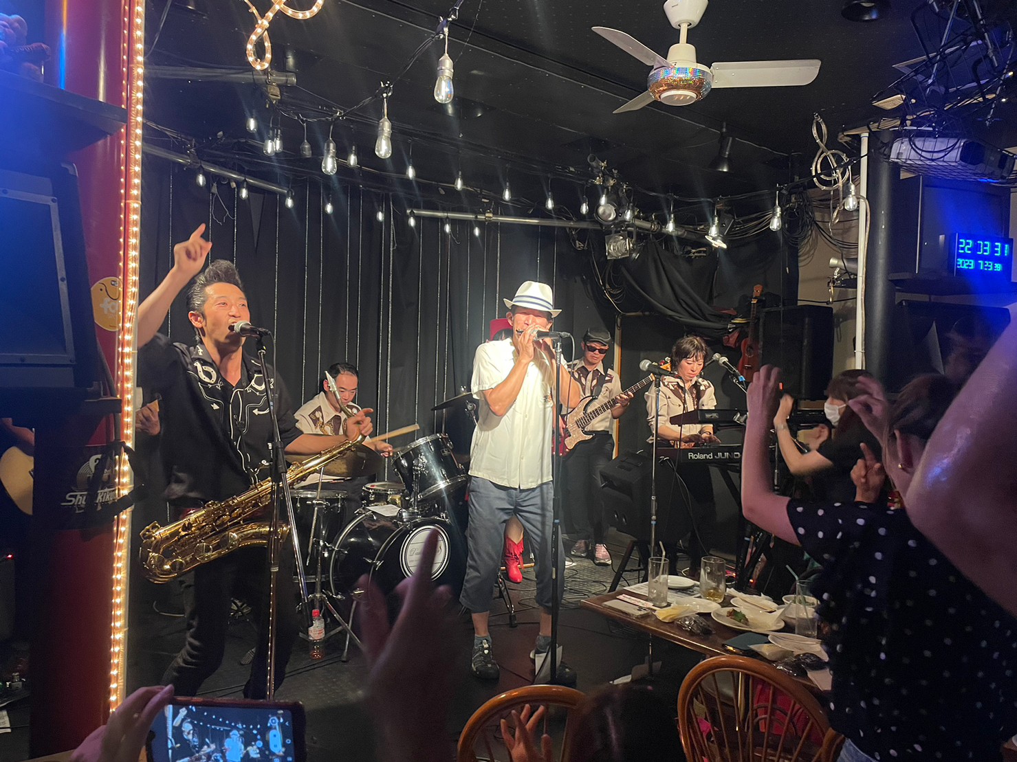ザ・ジェイミーズ結成10周年の第2弾! コロナ禍のため屋内ライブを自粛していたが、3年半ぶり、ついに屋内解禁! ダディーズカフェファイナルオールディーズパーティーへお越しの皆様ありがとうございました! ジェイミーズも大変お世話になっている、いやジェイミーズの前に活動していたバンド時代も、もっと言えばSaxエディが楽器を始める前からダディーズマスターのバンドを見に通っていたダディーズカフェさん閉店に伴い、今回で同店最後の出演となりました。(ジェイミーズとしては7回目の出演。) 対バン1部で盛り上げて頂いたマイキーズさんやダディーズカフェマスターをゲストにめちゃくちゃ盛り上がりまして、朝まで眠れなかった程興奮してます! メンバーに「ダディーズカフェ最後だから出演の思い出に動画も写真もバンバン撮ってね」と伝えていたので皆で撮りまくり(*^^)v ザ・ジェイミーズ10周年にして初の7人編成! さらにはダディーズカフェマスターにも歌って頂きました! 最後のダディーズカフェ出演で最高の思い出が出来ました♪ (Saxエディは興奮で深夜0時頃帰宅前に近くの運動公園でリーゼントのままウォーキングしてから帰りました笑) 集合写真 左から Saxエディ、Gtバナ、Voかな、Guestダディーズカフェマスター、Voキャロライン、Drケンケン、Keyアッキー(サポート)、Baロン 2023/7/23(日)ダディーズファイナルセトリ 1バーニングラブ 2ジニージニージニー(キャロ) 3ミスターツイスター(かな) 4アットザホップ 5イッツソーイージー(かな) 6大人になりたい(アキ) 7サンライトツイスト(キャロ) 8ミザルー 9キッスは目にして(アキ) 10ルシール(新レパ) 11恋のバカンス(かな) 12離さないで(キャロ) 13ダイアナ(マスター)(予定に無かったがお客様からのリクエスト) 14マイボニー 15かっこいいツイスト(キャロ) 16カモンエヴリバディ 17君の瞳に恋してる(かな) ====== E1レッツツイストアゲイン(マスター) E2ジョニーBグッド 貴重なステージ上の演者側から見える光景をご覧ください!