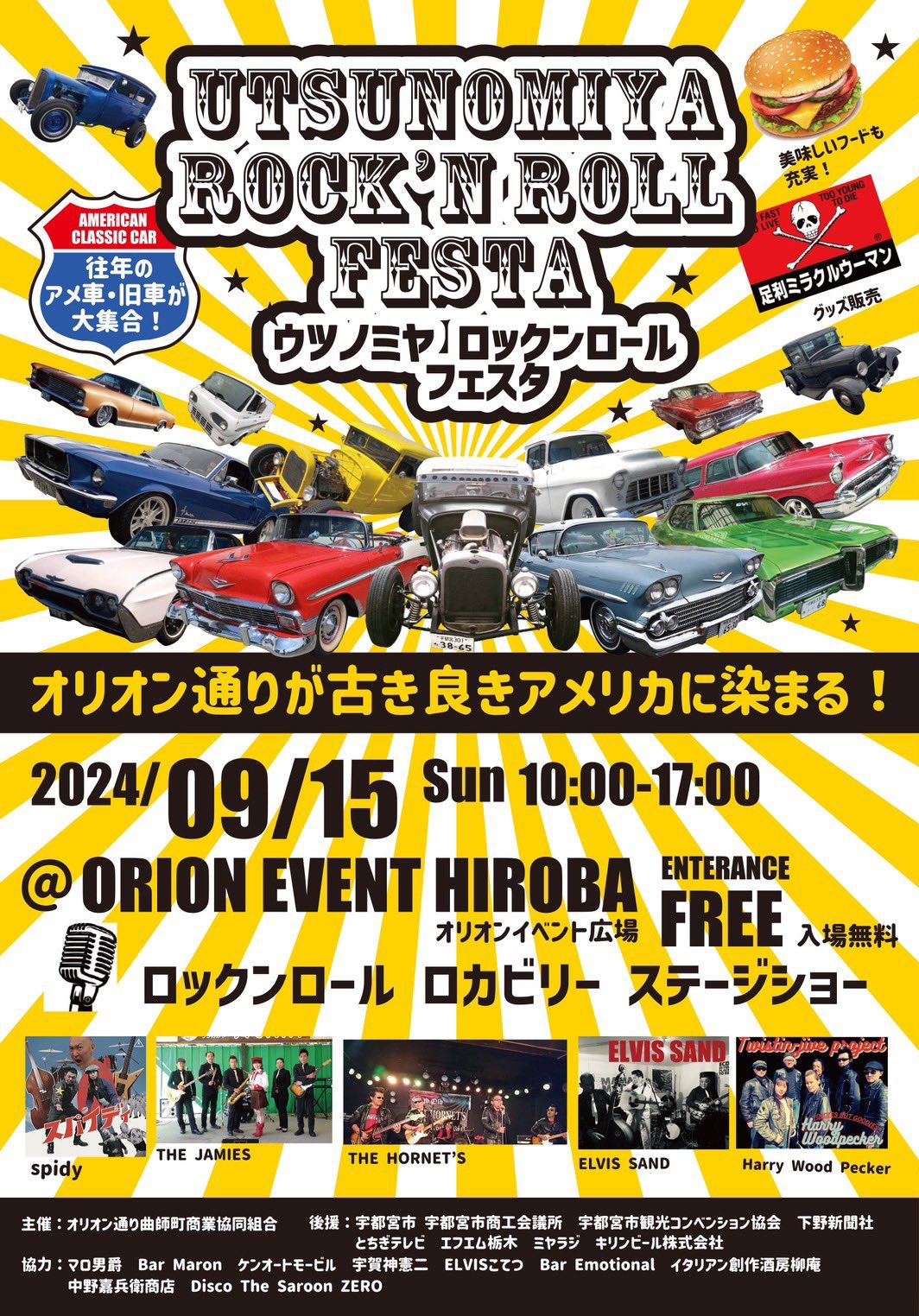 栃木のキャラクター(とちまるくん、とち介、キララちゃん、ベリーちゃん)が集結し感謝祭を盛り上げます。キララちゃん生誕祭、ジェイミーズ出演、警察車両の展示と盛りだくさんなイベントです。