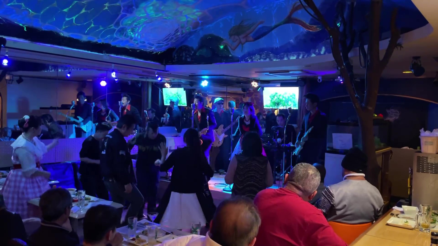 出演後は陶酔スタッフのミニライブを見ながらバイキングを堪能
